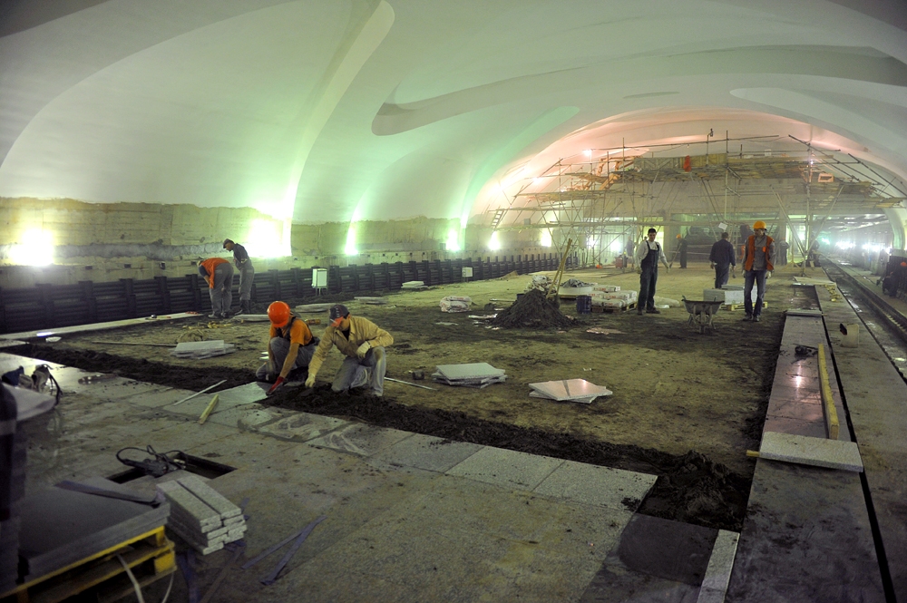 2 июл. 2012 г. Осмотр хода строительства станции "Ходынское поле" Третьего пересадочного контура метрополитена. С. Собянин, М. Хуснуллин, А. Бочкарев 39 фото