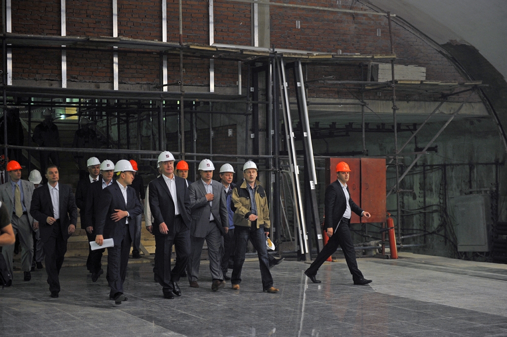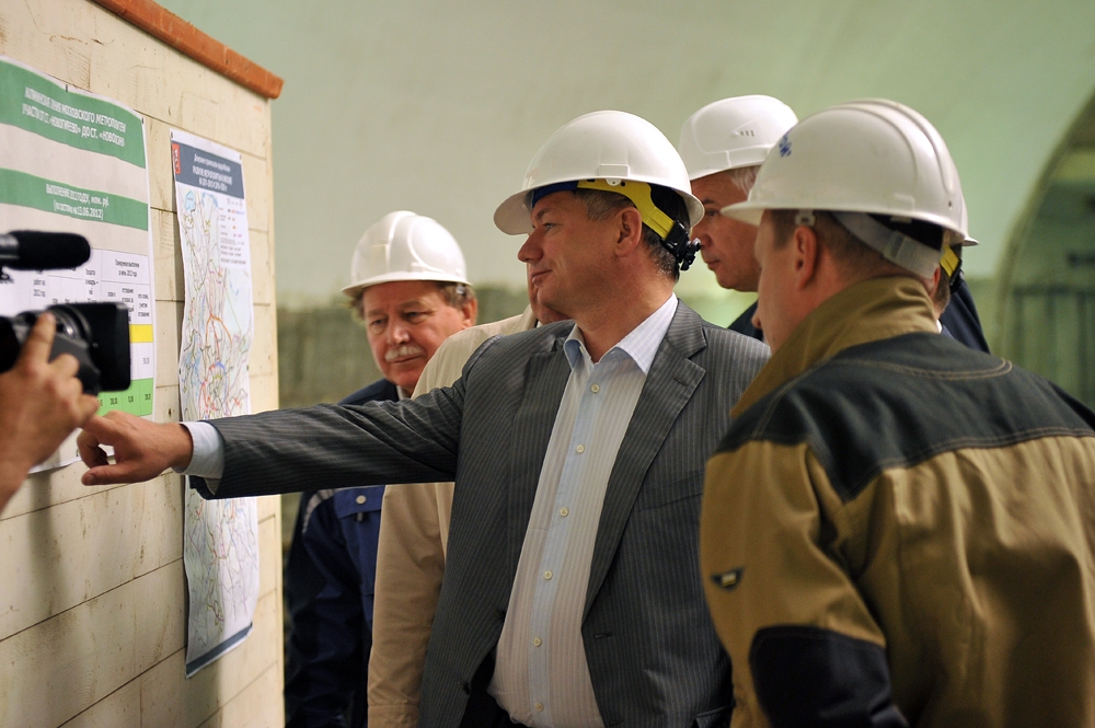 4 июн. 2012 г. Осмотр хода строительства станции "Пятницкое шоссе" Арбатско-Покровской линии метрополитена. С. Собянин, М. Хуснуллин, А. Бочкарев 23 фото
