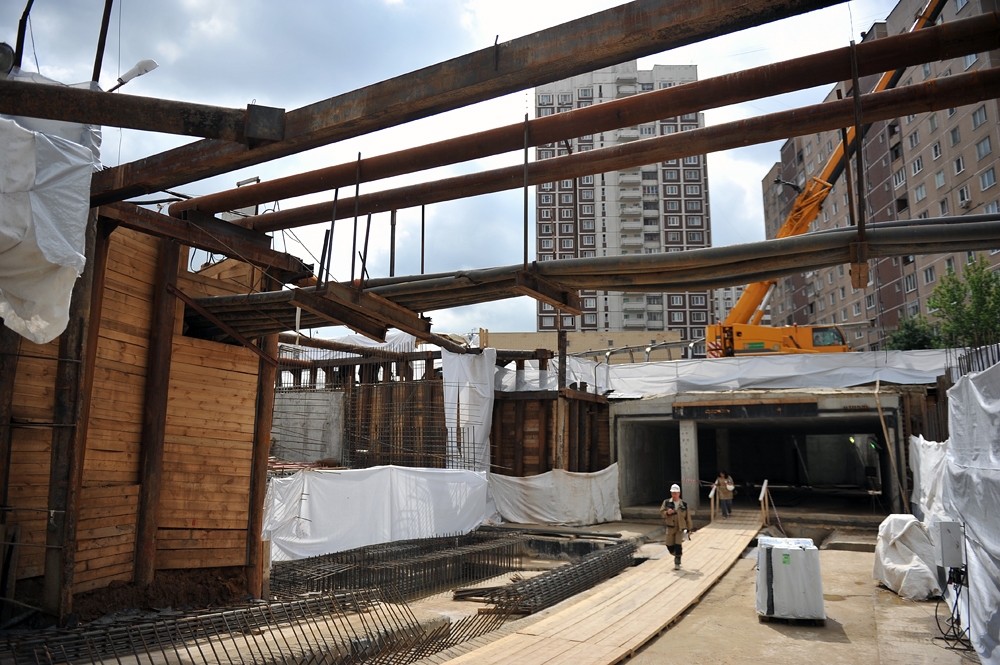 Троицкая линия метрополитена станция метро Коммунарка - станция метро Новомосковская. Линия метрополитена станция метро Коммунарка - станция метро Столбово. 2 и 3 этапы "Проект организации строительства. Котлованы открытого способа работ", "Основной период. Линия метрополитена". Этап 2, 3.1. Станция метро Коммунарка.