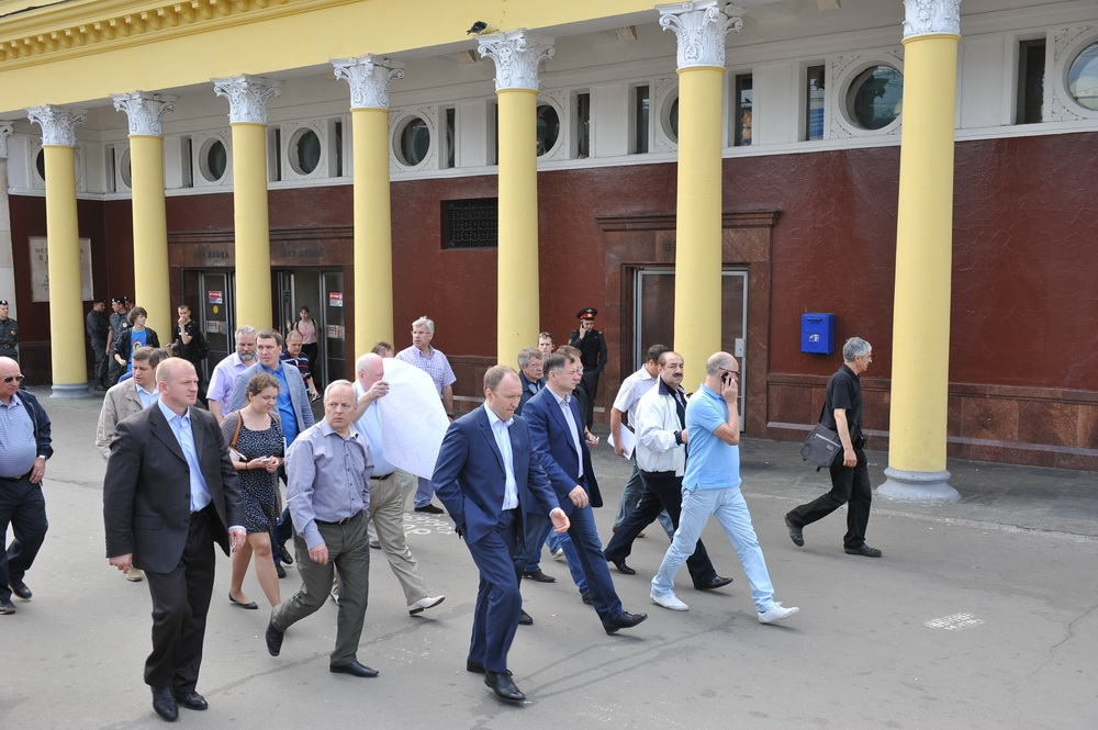 13 июн. 2012 г. Осмотр хода строительства станции "Новокосино" Калининской линии метрополитена. С. Собянин, М. Хуснуллин, А. Бочкарев 20 фото
