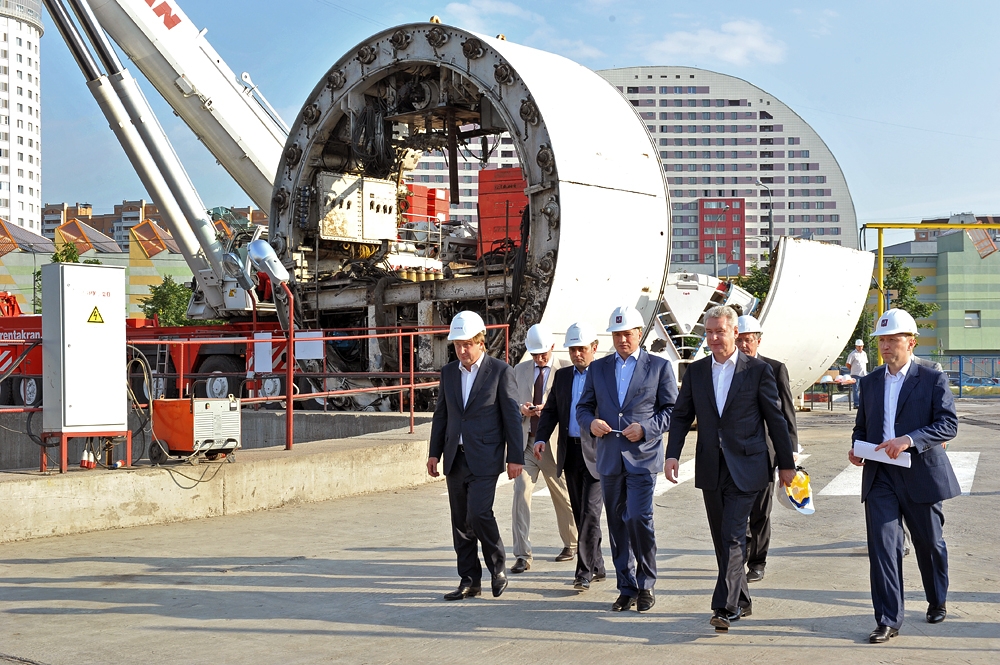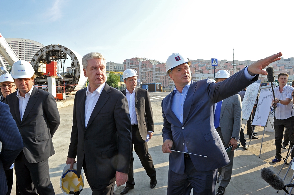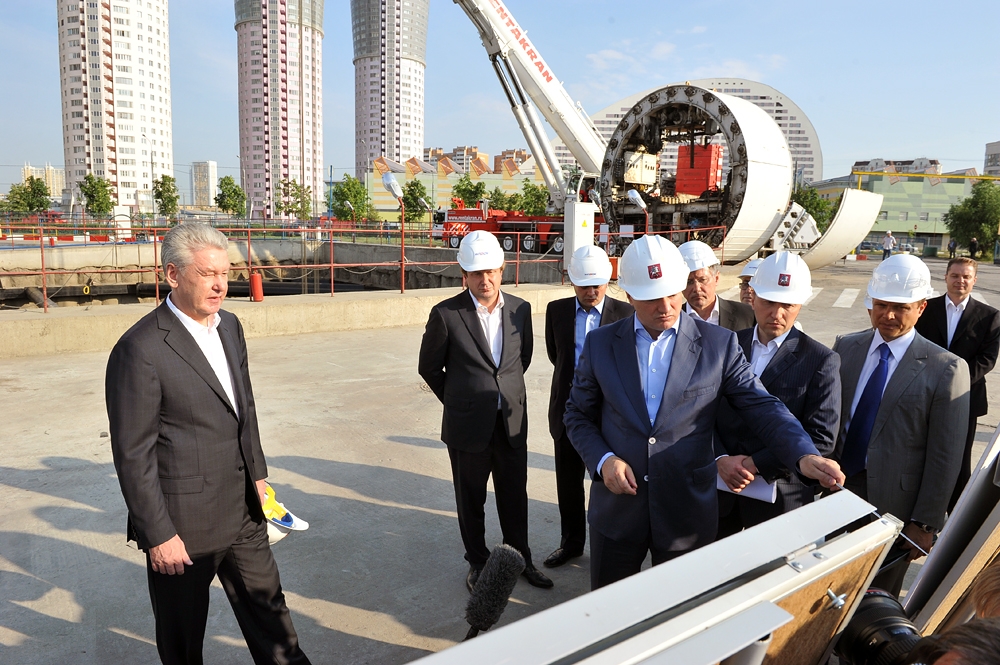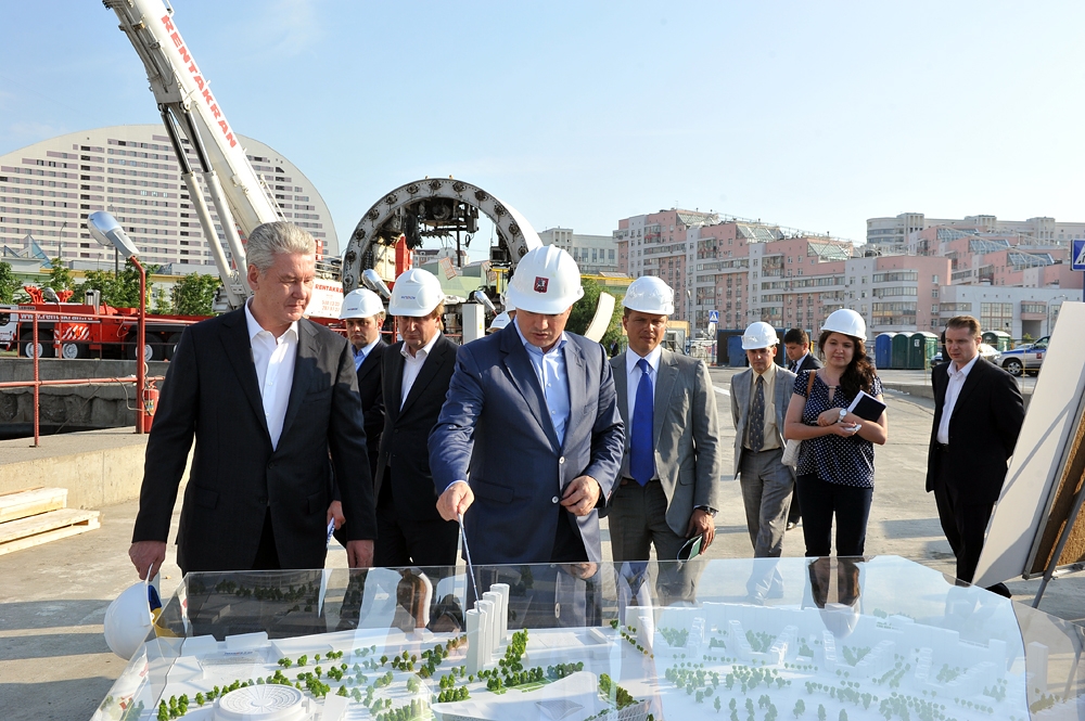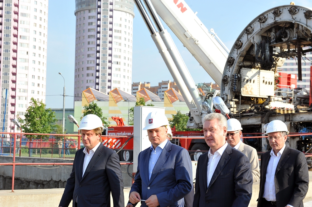 13 июн. 2012 г. Осмотр хода строительства станции "Новокосино" Калининской линии метрополитена. С. Собянин, М. Хуснуллин, А. Бочкарев 20 фото