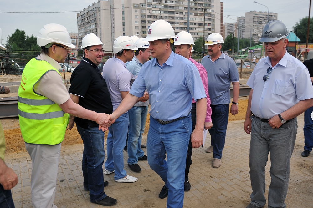 2 июл. 2012 г. Осмотр хода строительства станции "Ходынское поле" Третьего пересадочного контура метрополитена. С. Собянин, М. Хуснуллин, А. Бочкарев 39 фото
