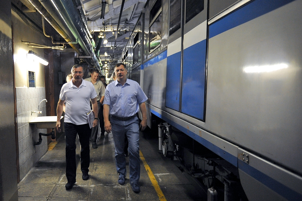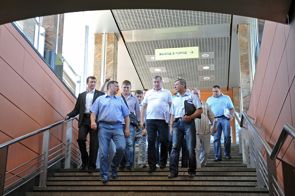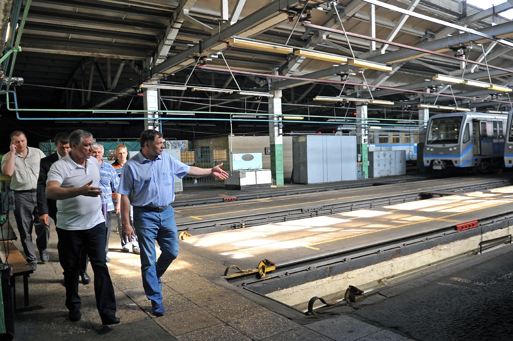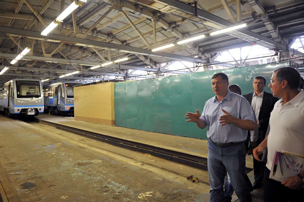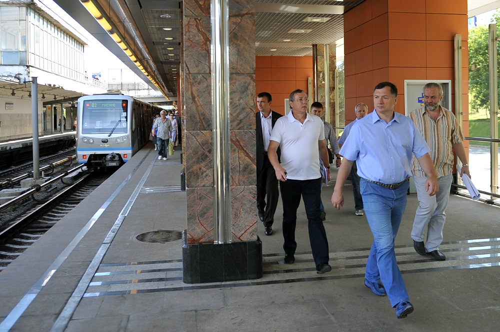 2 июл. 2012 г. Осмотр хода строительства станции "Ходынское поле" Третьего пересадочного контура метрополитена. С. Собянин, М. Хуснуллин, А. Бочкарев 39 фото