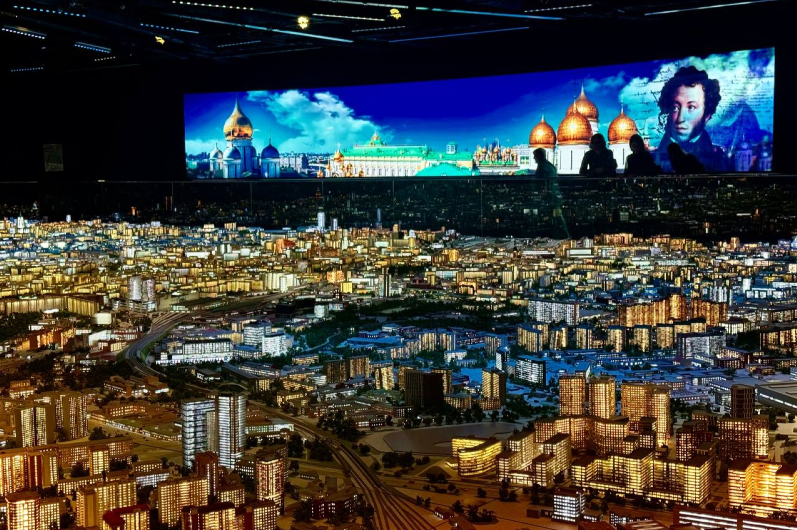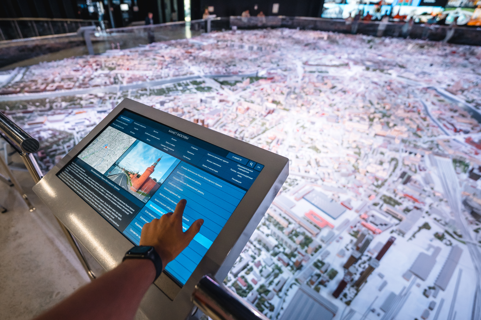 Более 500 знаковых городских объектов включено в систему управления макетом по разделам: «Московский Кремль», «Уникальные сооружения», «Административные здания», «Высотки», «Вокзалы», «Бульвары и скверы» и др.