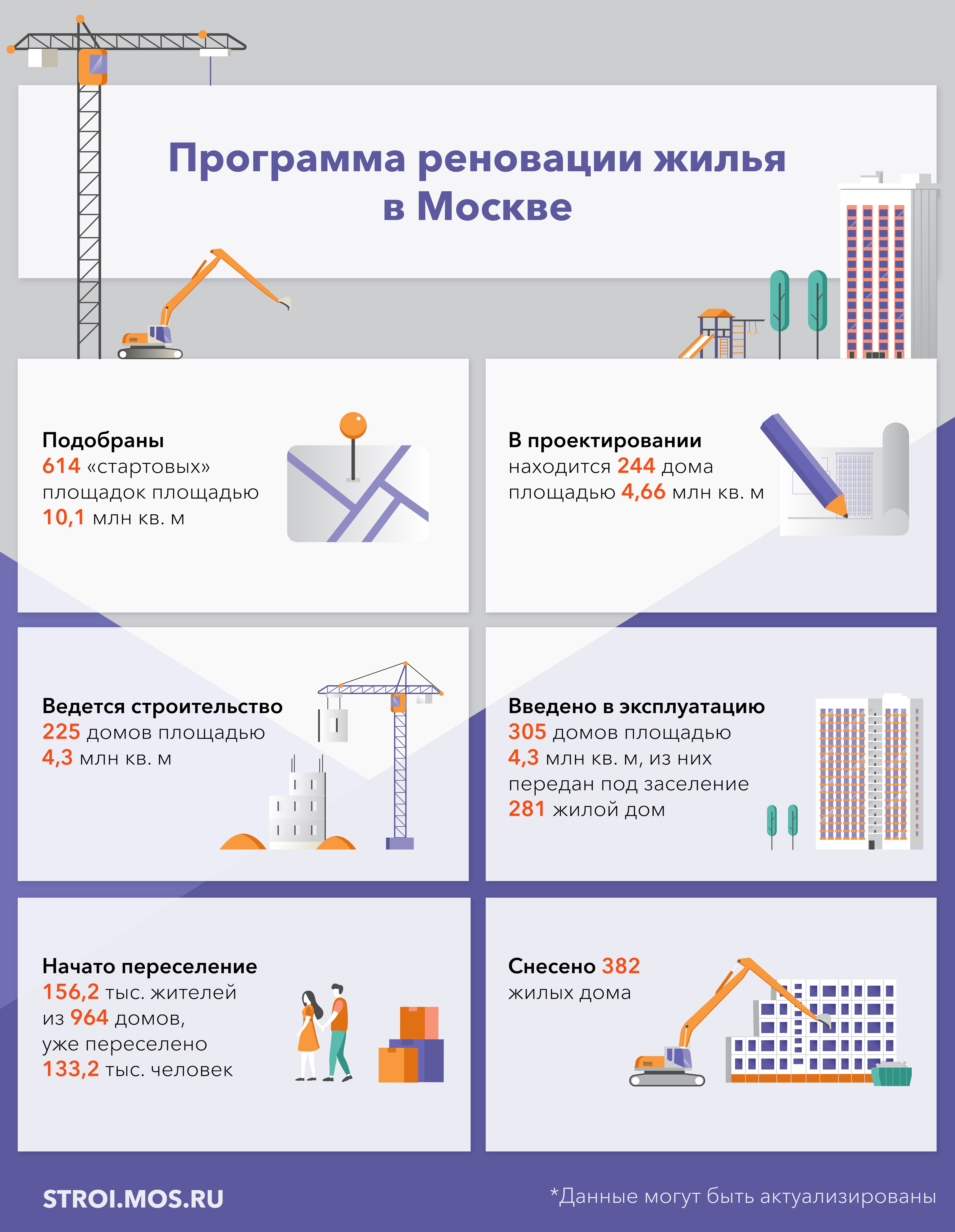 Реновация жилья в Москве Темы в материале: Реновация 25 мар. 2024 г. 18:14 Анастасия Лонина Присоединяйтесь Теги жилье реновация реновация жилых кварталов программа реновации жилья Другие материалы по теме 11 апр. 2024 г. Реновация жилья в Москве 4 апр. 2024 г. Реновация жилья в Москве 29 мар. 2024 г. В районе Филёвский Парк начали заселять новый дом по реновации 28 мар. 2024 г. В Москве снесли 44 старых жилых дома по реновации с начала года 19 мар. 2024 г. Бочкарёв: в Москве введут около 1,5 млн кв. м жилья по реновации в 2024 году 18 мар. 2024 г. 12 новостроек начнут заселять по реновации в марте 15 мар. 2024 г. Дом на 132 квартиры начнут заселять по реновации в Северном Измайлово 18 мар. 2024 г. Реновация жилья в Москве Новости дня Все новости 3 дек. 2025 г. 14:30 Владимир Ефимов: новое общественное пространство с читальней и спортивными площадками появится в Западном Дегунине 3 дек. 2025 г. 11:30 Владимир Ефимов: облик наземных павильонов станции метро «ЗИЛ» напомнит о прошлом завода 3 дек. 2025 г. 11:25 Стартовал прием заявок на премию города Москвы в области архитектуры и градостроительства – мэр 3 дек. 2025 г. 11:00 На западе Москвы появится новый арт-объект 3 дек. 2025 г. 10:00 Внесены изменения в граддокументацию для реконструкции подстанции в Отрадном 3 дек. 2025 г. 09:20 Около двух тысяч маломобильных граждан и членов их семей получили адаптированные квартиры по программе реновации 3 дек. 2025 г. 09:00 Владимир Ефимов: в Можайском районе реорганизуют четыре участка по проекту КРТ 3 дек. 2025 г. 09:00 В Нижегородском районе началось строительство бизнес-центра со спортивным парком