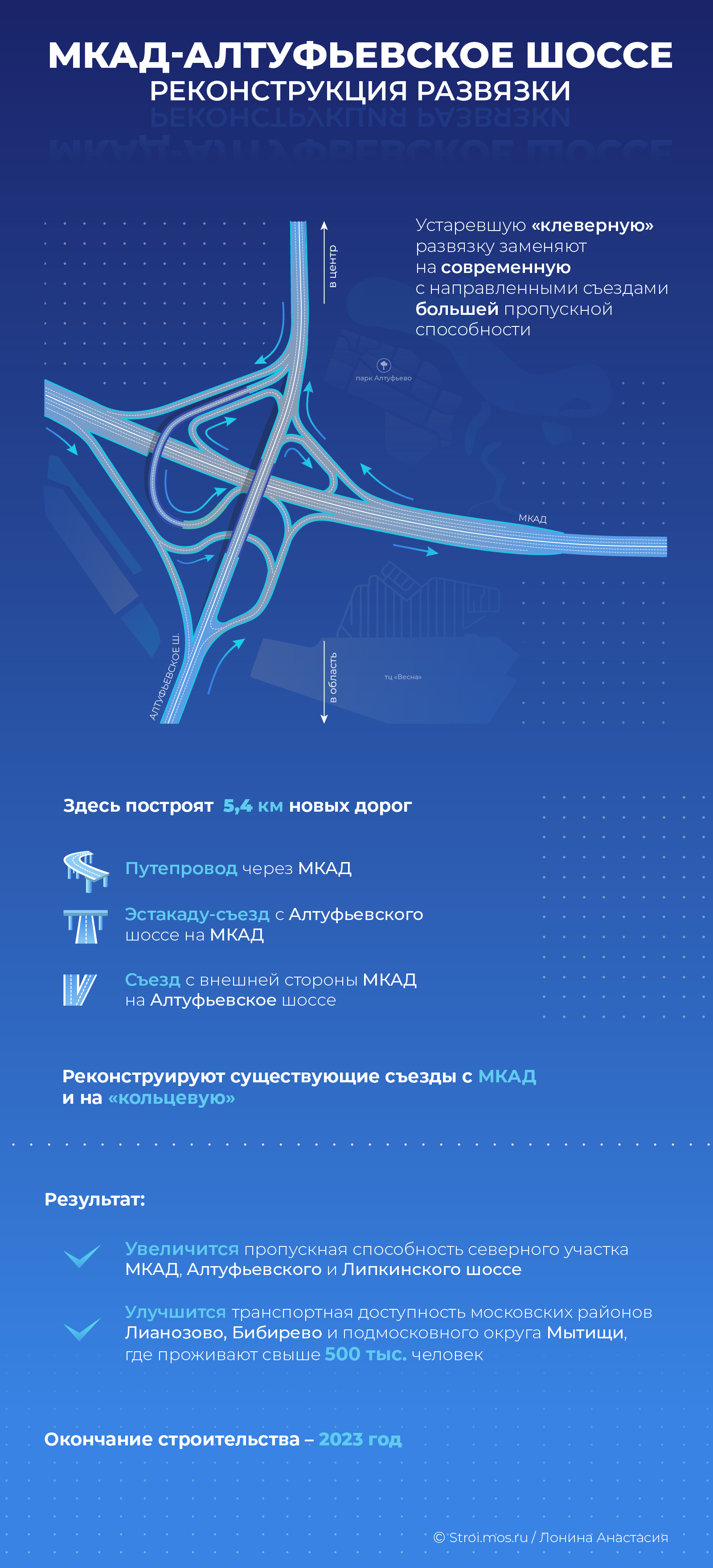 Как реконструируют развязку МКАД - Алтуфьевское шоссе Темы в материале: Дорожное строительство 7 февр. 2022 г. 15:16 Анастасия Лонина Присоединяйтесь Теги Алтуфьевское шоссе дороги МКАД развязки развязки на МКАД Другие материалы по теме Реконструкция транспортной развязки на пересечении МКАД с Липецкой ул. со строительством необходимых для функционирования подъездных дорог. Этап 1.1. Этап 1.1.3. Этап 1.1.3.1 (Съезды с МКАД,съезд с трассы М-4 "Дон", реконструкция МКАД, путепроводы, тоннель, инженерные коммуникации и сооружения) Транспортная развязка на пересечении МКАД с Осташковским шоссе. Этап 4. Развязка МКАД – Осташковское шоссе Развязка с Алтуфьевским шоссе Реконструкция клеверных развязок на МКАД Новости дня Все новости 3 дек. 2025 г. 14:30 Владимир Ефимов: новое общественное пространство с читальней и спортивными площадками появится в Западном Дегунине 3 дек. 2025 г. 11:30 Владимир Ефимов: облик наземных павильонов станции метро «ЗИЛ» напомнит о прошлом завода 3 дек. 2025 г. 11:25 Стартовал прием заявок на премию города Москвы в области архитектуры и градостроительства – мэр 3 дек. 2025 г. 11:00 На западе Москвы появится новый арт-объект 3 дек. 2025 г. 10:00 Внесены изменения в граддокументацию для реконструкции подстанции в Отрадном 3 дек. 2025 г. 09:20 Около двух тысяч маломобильных граждан и членов их семей получили адаптированные квартиры по программе реновации 3 дек. 2025 г. 09:00 Владимир Ефимов: в Можайском районе реорганизуют четыре участка по проекту КРТ 3 дек. 2025 г. 09:00 В Нижегородском районе началось строительство бизнес-центра со спортивным парком