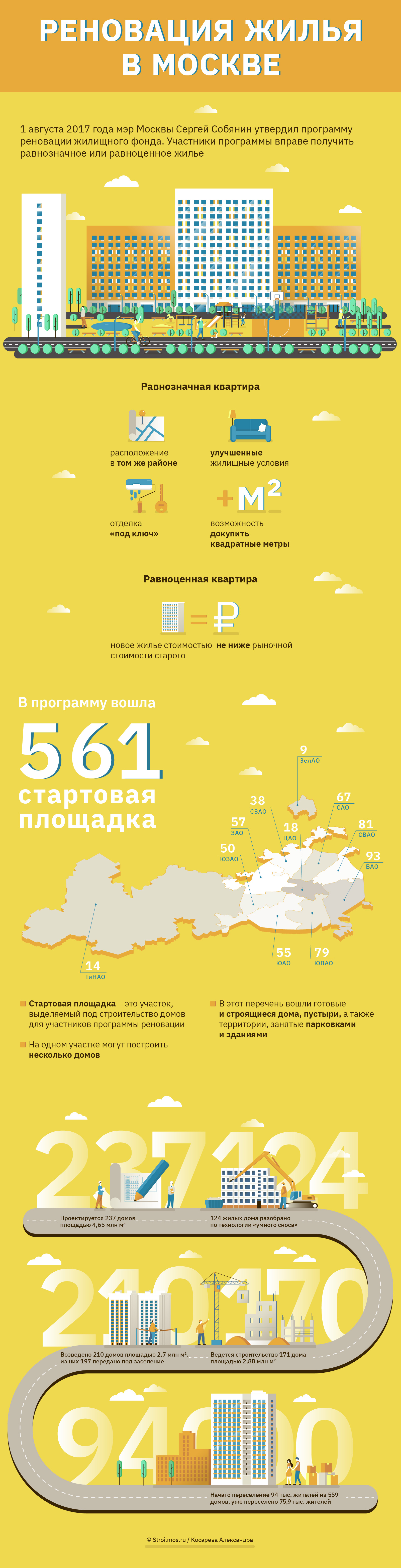 Реновация жилья в Москве Темы в материале: Градостроительная политика Жилье Реновация 13 окт. 2022 г. 09:42 Александра Косарева Присоединяйтесь Теги градостроительная политика жилье реновация Другие материалы по теме 24 окт. 2022 г. Реновация жилья в Москве 20 окт. 2022 г. Реновация жилья в Москве 19 окт. 2022 г. Реновация жилья в Москве 11 окт. 2022 г. Реновация жилья в Москве 6 окт. 2022 г. Реновация жилья в Москве 4 окт. 2022 г. Реновация жилья в Москве 29 сент. 2022 г. Реновация жилья в Москве 26 сент. 2022 г. Реновация жилья в Москве Новости дня Все новости 3 дек. 2025 г. 14:30 Владимир Ефимов: новое общественное пространство с читальней и спортивными площадками появится в Западном Дегунине 3 дек. 2025 г. 11:30 Владимир Ефимов: облик наземных павильонов станции метро «ЗИЛ» напомнит о прошлом завода 3 дек. 2025 г. 11:25 Стартовал прием заявок на премию города Москвы в области архитектуры и градостроительства – мэр 3 дек. 2025 г. 11:00 На западе Москвы появится новый арт-объект 3 дек. 2025 г. 10:00 Внесены изменения в граддокументацию для реконструкции подстанции в Отрадном 3 дек. 2025 г. 09:20 Около двух тысяч маломобильных граждан и членов их семей получили адаптированные квартиры по программе реновации 3 дек. 2025 г. 09:00 Владимир Ефимов: в Можайском районе реорганизуют четыре участка по проекту КРТ 3 дек. 2025 г. 09:00 В Нижегородском районе началось строительство бизнес-центра со спортивным парком