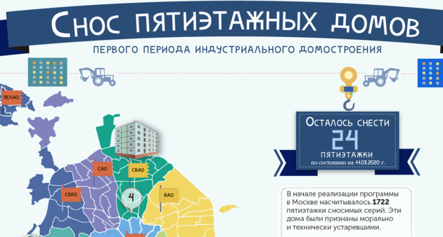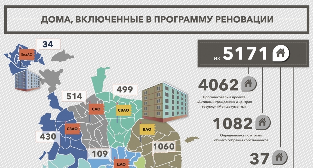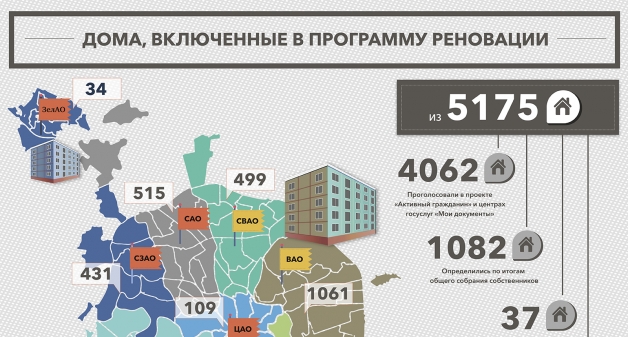 Программа реновации жилья – один из самых масштабных проектов правительства Москвы. На месте старых пятиэтажек возводят современные новостройки. Сколько домов уже ввели и в каких районах идет переселение – смотрите в нашей инфографике.