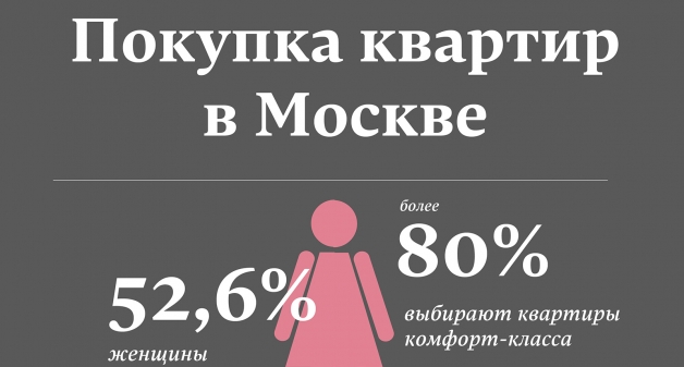 Составлен социальный портрет покупателей квартир в крупных жилых комплексах Москвы. 52,6% - это женщины, причем более 80% из них выбирают квартиры комфорт-класса. Подавляющее большинство покупательниц находятся в браке и имеют детей.