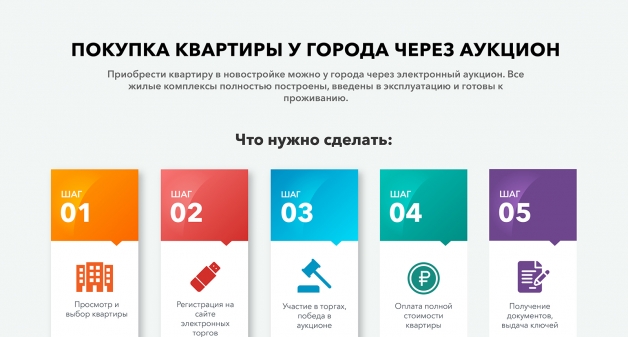 Приобрести у города квартиру в новостройке можно через электронный аукцион. Все жилые комплексы полностью построены, введены в эксплуатацию и готовы к проживанию.