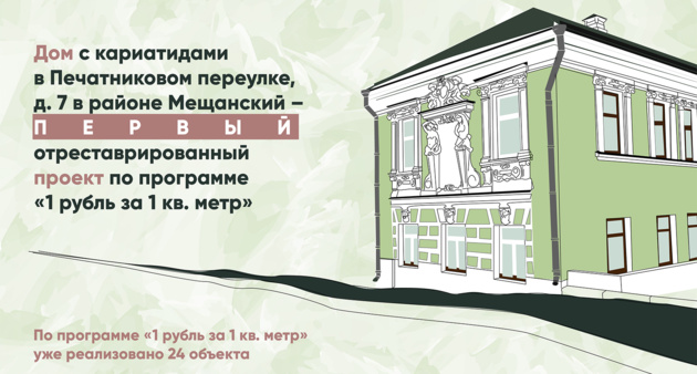 Программа «1 рубль за 1 квадратный метр» действует в Москве с 2012 года, за это время было сохранено 19 объектов культурного наследия. По программе инвестор получает льготные условия аренды зданий-памятников и обязуется провести научную реставрацию за свой счет.
