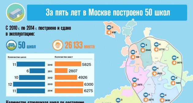 В период с 2010 года по 2014 год в столице построено и сдано в эксплуатацию 50 школ на 26 133 места.