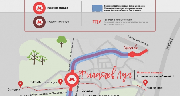 Красная линия станет длиннее на 12 км. После «Саларьево» построят четыре станции – «Филатов луг», «Прокшино», «Ольховая», «Столбово».