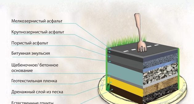 Дорога - это многослойный «пирог» толщиной около 1,2 метра. С помощью новых технологий улучшается состав асфальтобетонного покрытия, благодаря чему дороги становятся еще безопаснее и прочнее. В зависимости от категории автодороги, возможной транспортной нагрузки и условий строительства применяются разные технические решения.