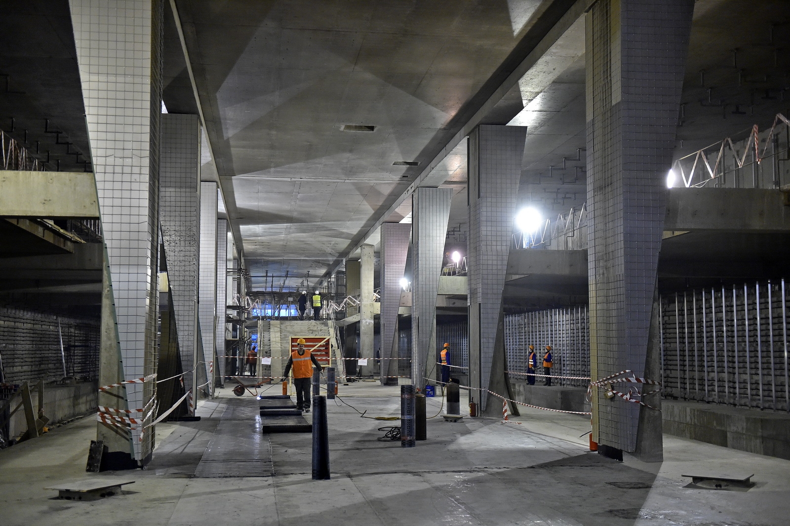 Сейчас мы прорабатываем вопрос по доставке оборудования к месту монтажа - эскалаторов и лифтов, а также другой «начинки» станций. В среднем, их строительная готовность составляет около 80%.
