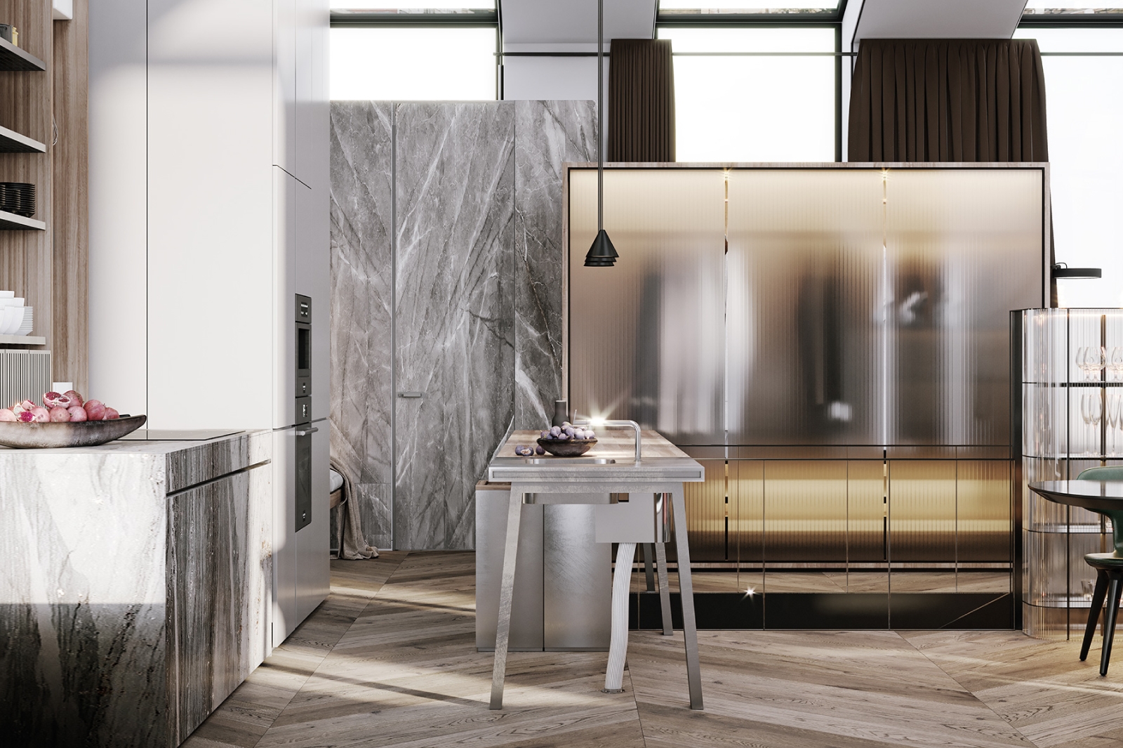 Для того чтобы реализовать такую концепцию, мы подняли два дома из семи «на ноги» – на уровень третьего этажа. Это позволило высвободить и увеличить внутреннюю территорию за счет сокращения жилых площадей. Надо отдать должное девелоперу проекта, группе INSIGMA, который согласился с этой концепцией. Залог хорошего проекта – именно в диалоге заказчика и архитектора, умении слушать.