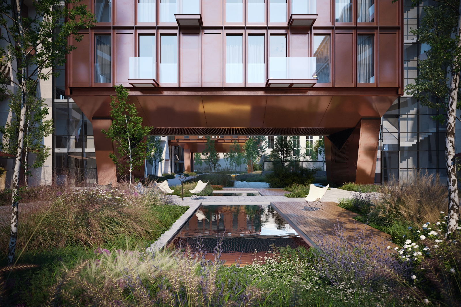 — Москва не отстает от основных мировых тенденций в этой сфере. Здесь много удачных многофункциональных проектов, жилых и офисных. Все они направлены на оздоровление городской среды. Важно, что девелоперы тоже это понимают. Например, работая над премиальным жилым проектом на Малой Ордынке, мы придумали большой внутренний двор-парк с концептуальным благоустройством – площадь придомовой территории составляет 7,4 тыс. кв. метров, из них 3,7 кв. метров – собственный сад с водоемами и арт-объектами. Это настоящее «сердце» проекта.