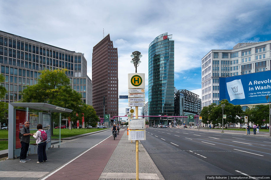— Ханс Штимманн: Мы неоднократно приглашали общественность — представителей прессы, архитектурных союзов, а также планировщиков, ландшафтных дизайнеров и тех, кто отвечает за транспортную инфраструктуру. Проекты представлялись на рассмотрение, но в результате все-таки один человек должен был принимать решение. А кто? В конечном итоге это был сенатор или я, как отвечающий за градостроительство в сенате, потому что это уровень политического решения. При этом 40% практически всегда были против. Допустим, те, кто отвечает за транспорт, хотят, чтобы была широкая улица. Те, кто занимается озеленением, хотят, чтобы все было зеленым. Инвесторы хотят как можно больше высотных зданий. Так что в конечном итоге культурную ответственность за город берет кто-то и делает предложение.