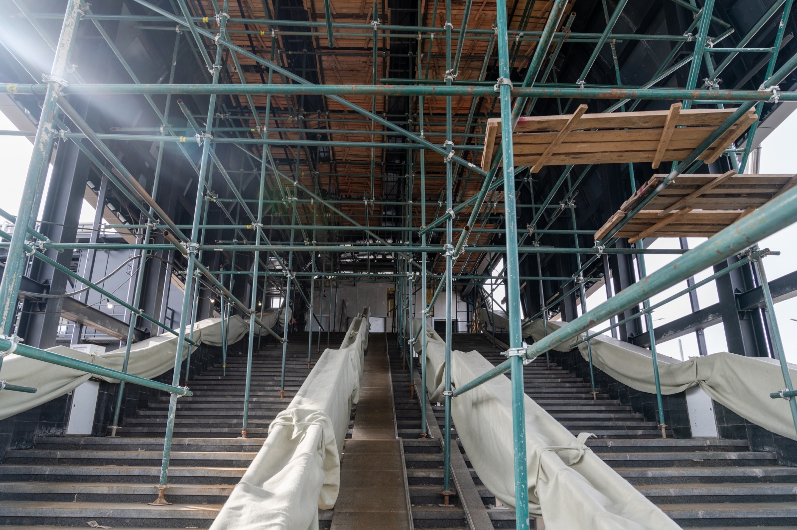 При строительстве станции используются сваебойное и буровое оборудование, экскаваторы, грейферы, бульдозеры и фронтальные погрузчики, башенные, гусеничные и автомобильные краны разной грузоподъемности. Так, для монтажа несущего каркаса (структуры) декоративной оболочки применялись гусеничные краны грузоподъемностью 750 тонн.