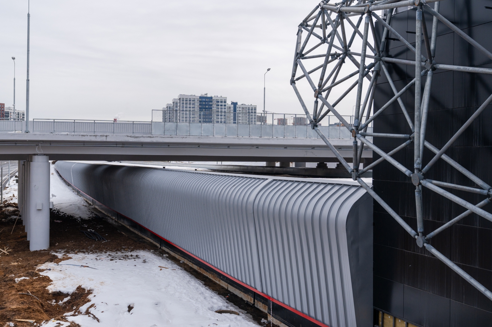 Расположение оборудования, в том числе вентиляционного, на кровле станции удалось замаскировать наружной декоративной оболочкой. Также оболочка придает объекту уникальный вид и совершенно точно сделает станцию «Потапово» точкой притяжения всего района.