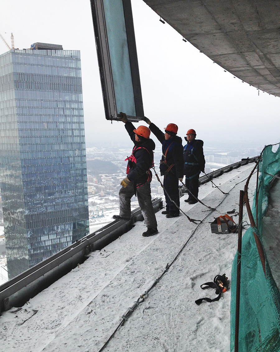 - Расскажите подробнее о фасаде комплекса, который полностью выполнен из стекла. Известно, что были использованы необычно широкие стеклопакеты «в пол», около 2,5 метра высотой, открывающие панорамный вид на Москву.