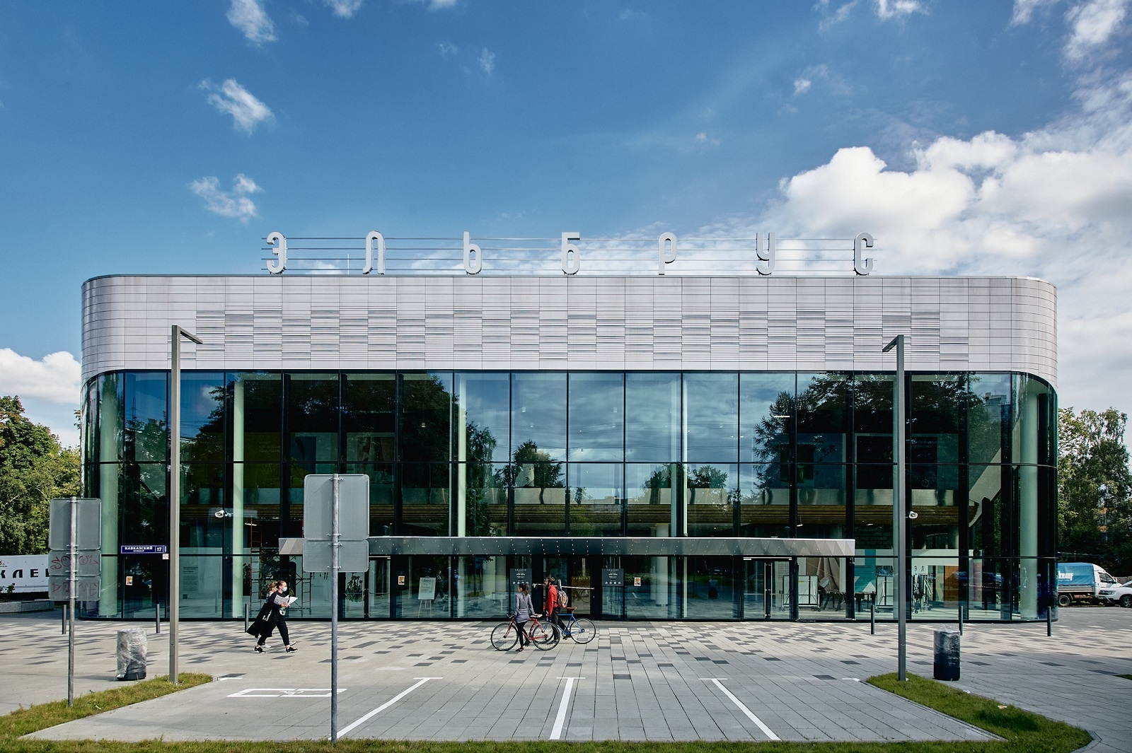 Ключевая архитектурная особенность – центральный стеклянный фасад. Он не только пропускает много света, но и создает эффект открытости городу. Дизайн вывески с названием «Эльбрус» сохранился, ее отсканировали и воспроизвели в современных долговечных материалах.