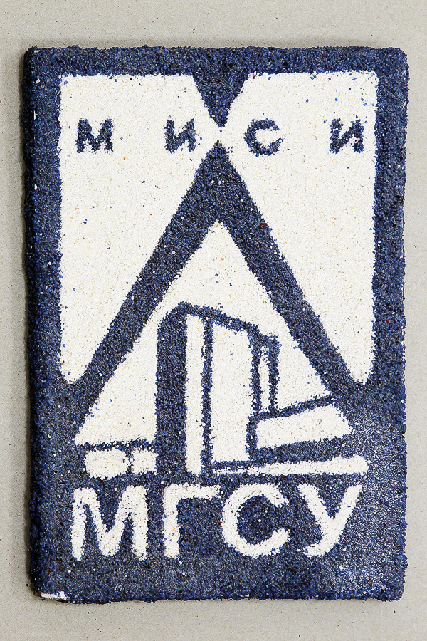 ![]() Герб МГСУ из окрашенного песка. |