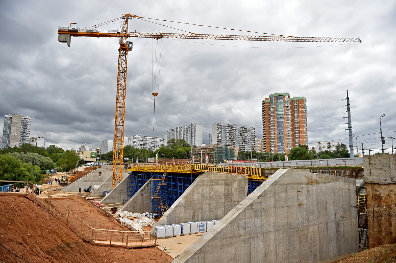 - Любая станция метро - уникальный продукт, все они непростые. Здесь же сложность в том, что рядом проходит Мичуринский проспект. Кроме того, большой уклон не позволяет передвигаться строительной технике, поэтому были установлены башенные краны, что в метростроении применяется очень редко.