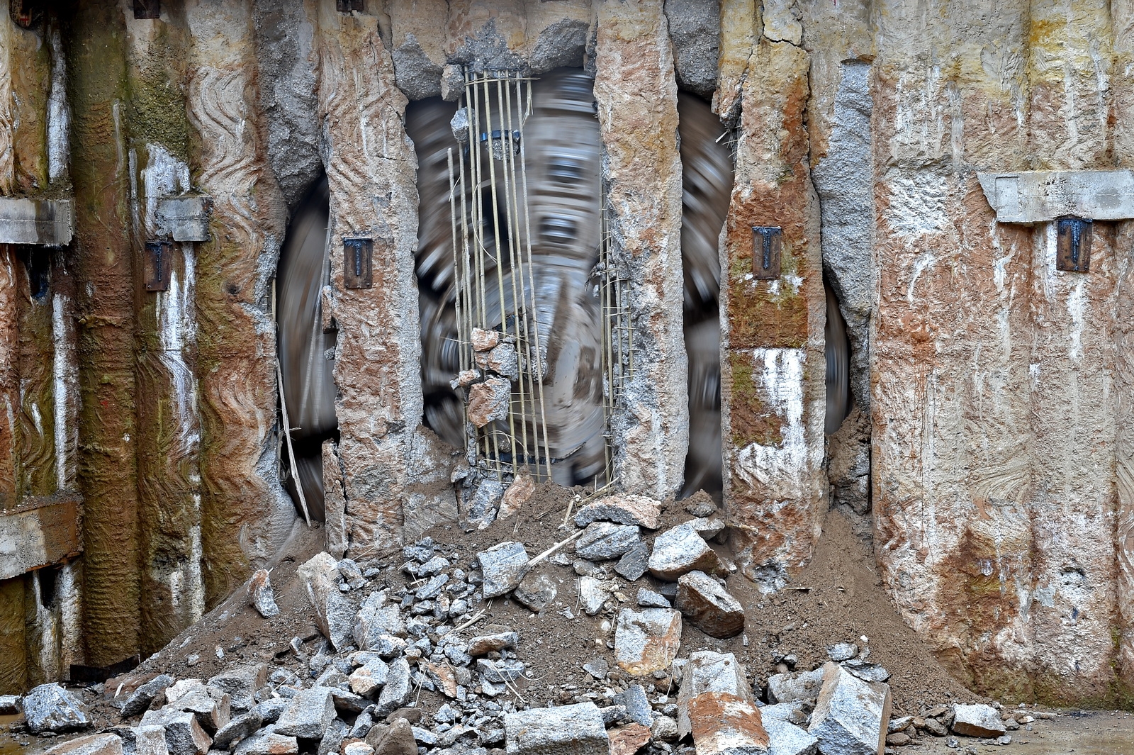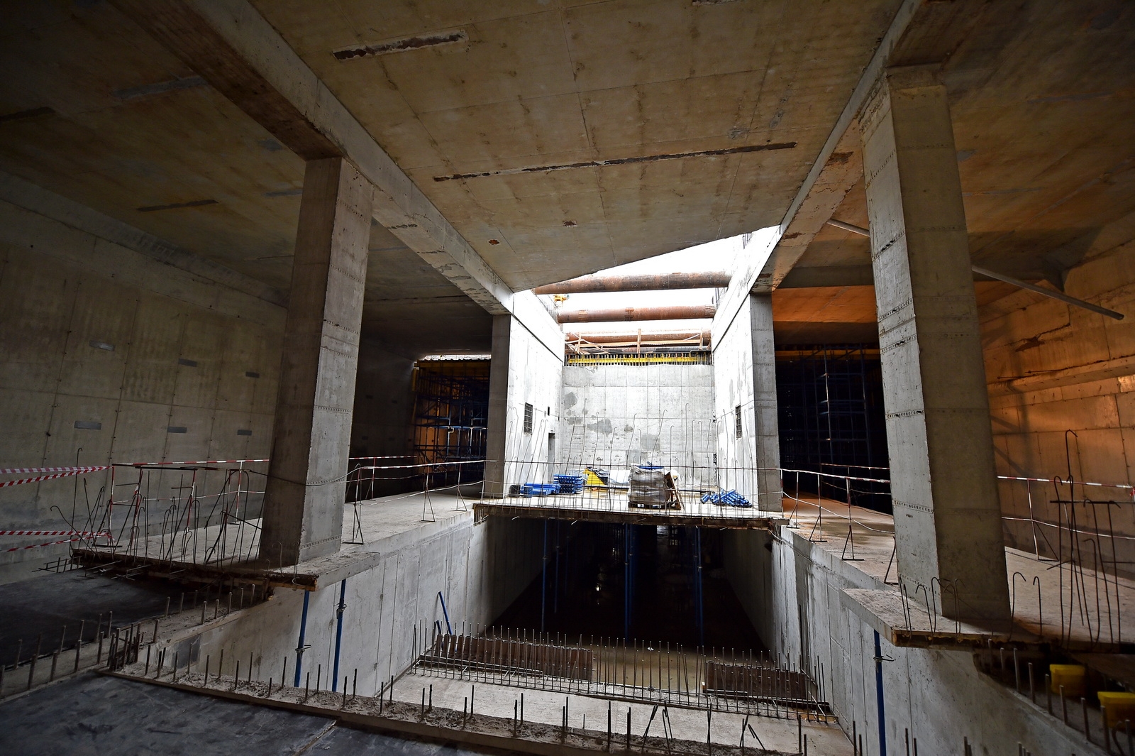 Помимо этого из-за насыпного грунта часть тоннеля приходится строить открытым способом. Для этого необходимо очень много поддерживающих массивных конструкций, чего на обычных подземных станциях нет. Также здесь залито очень большое количество бетона.