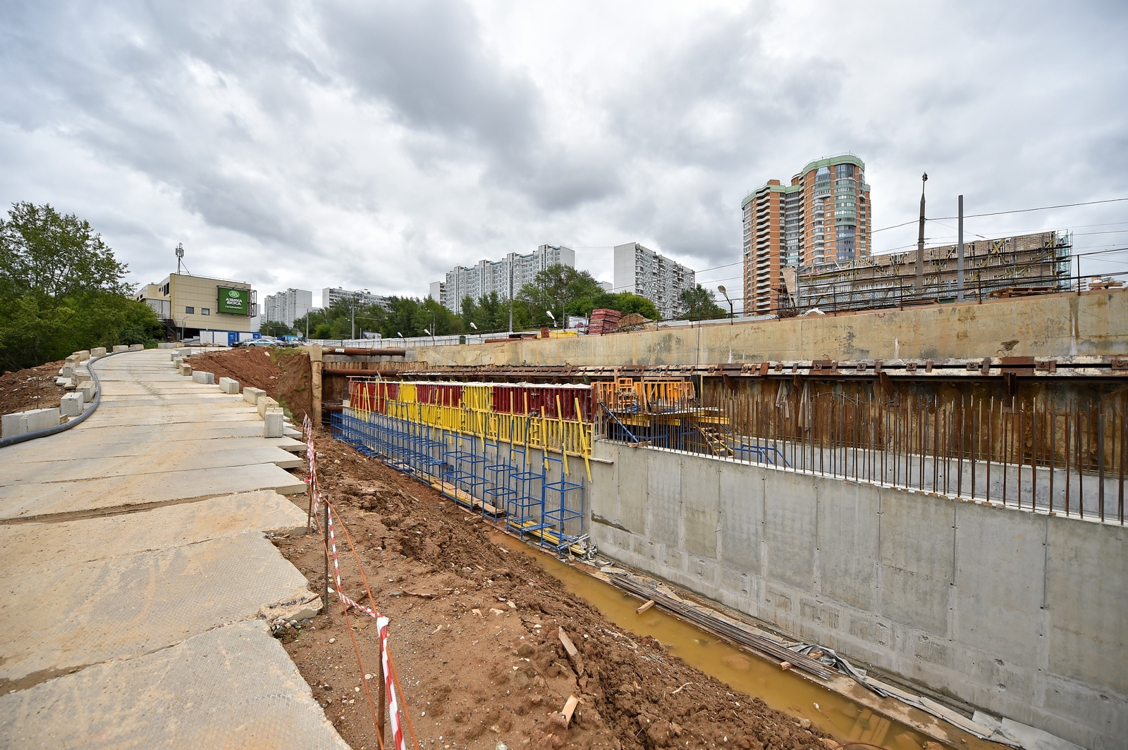 Поскольку одна из стен отсутствует, необходимы поддерживающие конструкции. В будущем со стороны панорамной стены обустроят пешеходную зону.
