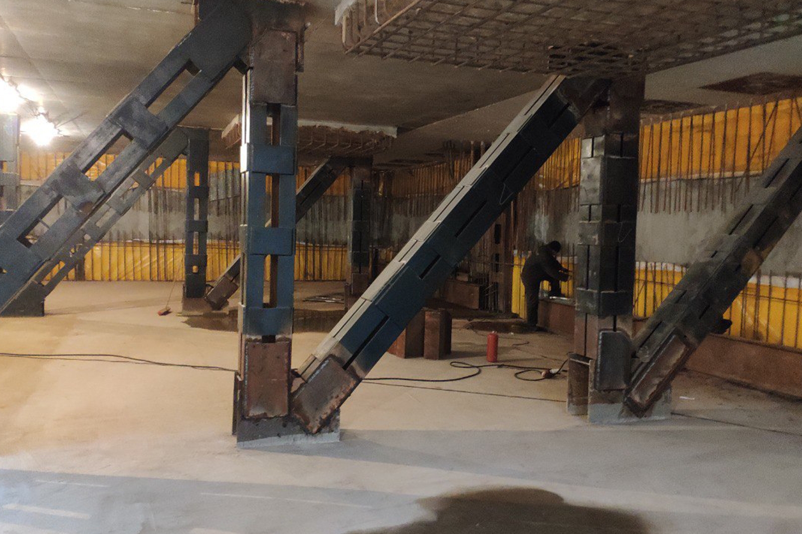 Опоры в новом здании были построены ровно в тех точках, где заканчивались колонны станции. Таким образом, нагрузка передавалась именно на эти конструкции. В местах соприкосновения были уложены специальные австрийские изоляционные маты, которые позволяют полностью глушить вибрацию, возникающую от движения поездов. Другая наша инновация заключалась в том, что при строительстве перехватывающей плиты применена несъемная опалубка с выкручивающимися опорами, которая позволила передать на вестибюль метро точечную нагрузку.