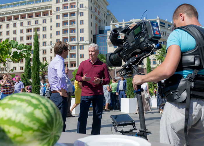Сергей Собянин: Я думал, что ты так все интервью будешь ходить с арбузом.