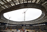 - «Спартак» построен. Неплохо идут работы на ЦСКА: трибуны отлиты, отделка делается, оборудование закуплено в большей степени. При этом должны были сдать объект в середине этого года вместе с двумя офисными башнями на территории, но немного снизили темпы из-за финансирования. Скорее всего откроют не в 2015, а в 2016 году. На «ВТБ Арене» полностью сделали фундаментную плиту, вышли на монолит. Но сейчас тоже пересматривают проект с точки зрения импортной составляющей и взяли тайм-аут. Срок ввода пока не называют.