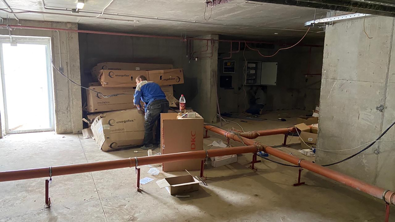 В первую очередь мы приступили к подготовительным работам по монтажу сетей электроснабжения, устройству временного теплового контура, откачке воды из подвальных помещений, демонтажу строительного брака, вывозу грунта и мусора.