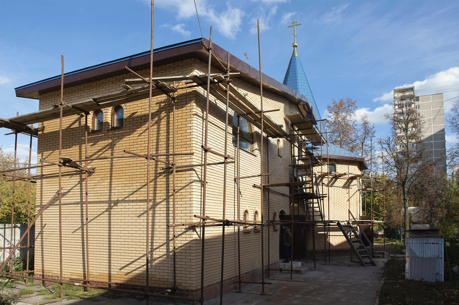 В храме в Братеево, который размещается в одном здании, осталось выполнить работы по благоустройству. К верхнему храму ведет большая главная лестница, а маломобильные граждане смогут подняться к службе на специально оборудованном лифте.