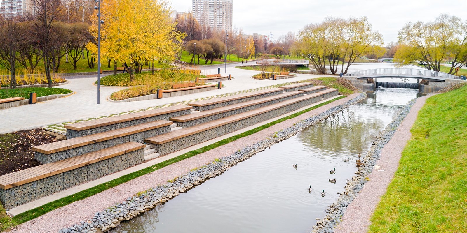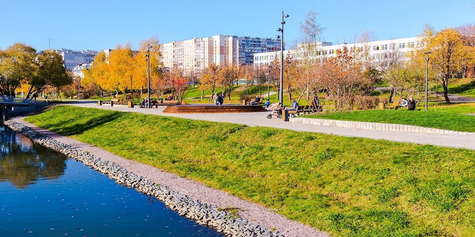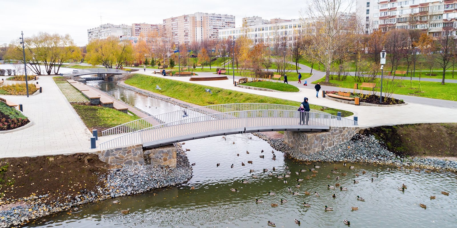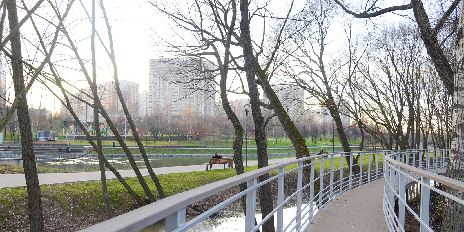 Завершено благоустройство парка в пойме реки Битцы на юго-западе столицы. Здесь сделали прогулочные и велодорожки, обустроили места для отдыха и спорта, сцену с амфитеатром, детские игровые площадки, площадку для выгула собак.
