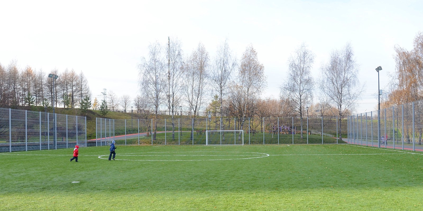 Для любителей футбола на территории парка обустроили поле с искусственным покрытием по стандартам Российского футбольного союза и требованиям Международной федерации футбола (ФИФА).
