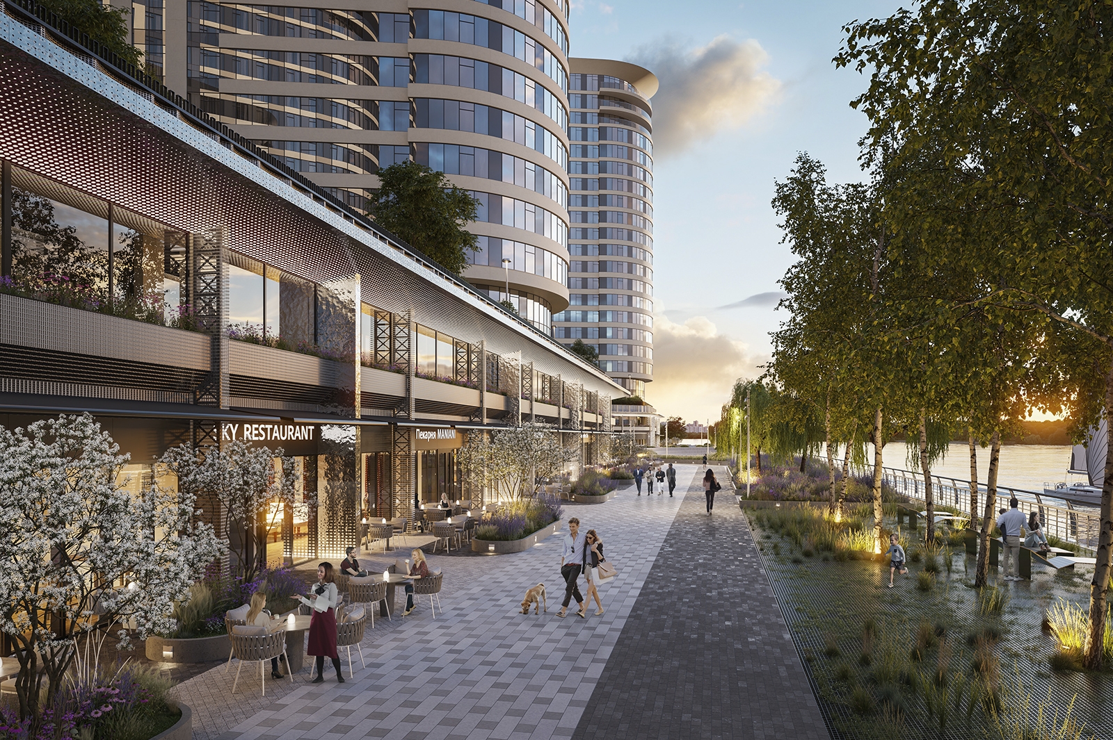 «Площадь общественного городского пространства составит порядка 7 тыс. кв. метров: здесь обустроят детские и спортивные площадки, амфитеатр для мероприятий, велодорожки и прогулочную зону с лежаками и скамейками», – подчеркнули в Wainbridge.