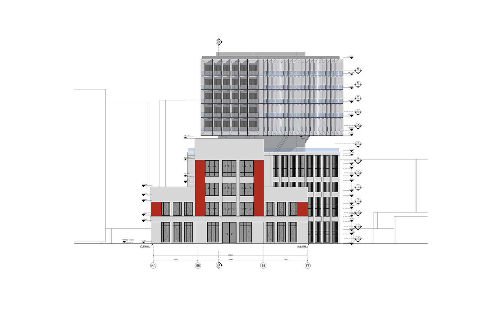 В ходе работ реконструировали бывшую телефонную станцию. Архитектурные элементы здания, выходящего на ул. Бакунинская, восстановлены.