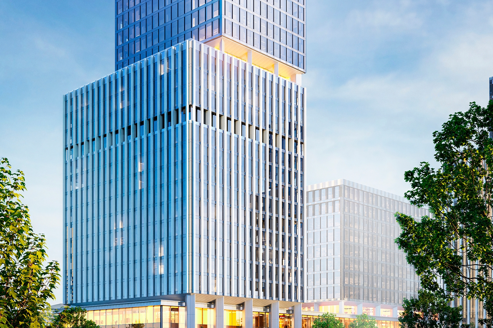 В трехэтажном стилобате расположатся полезные городские сервисы: кафе, рестораны, торговые помещения, фитнес-центр и конференц-зал.