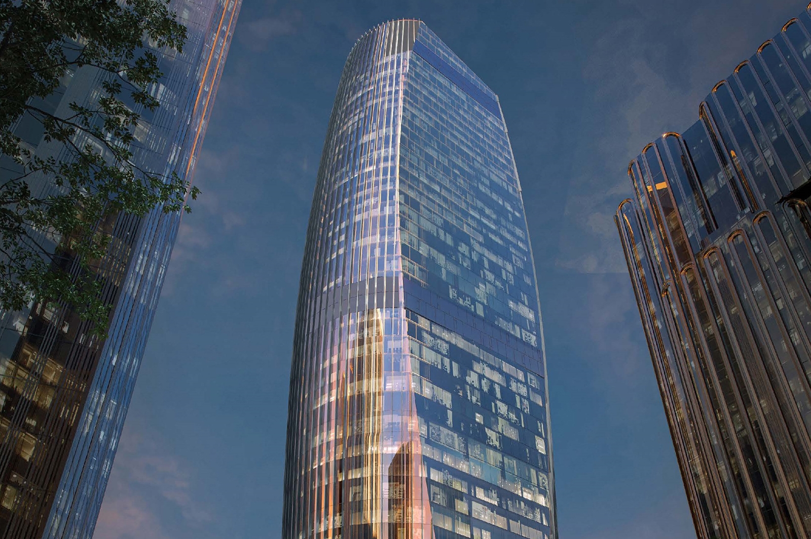 Проект предусматривает возведение башни высотой 225 м с трехэтажным стилобатом, где разместятся лобби, коммерческие и подсобные помещения.
