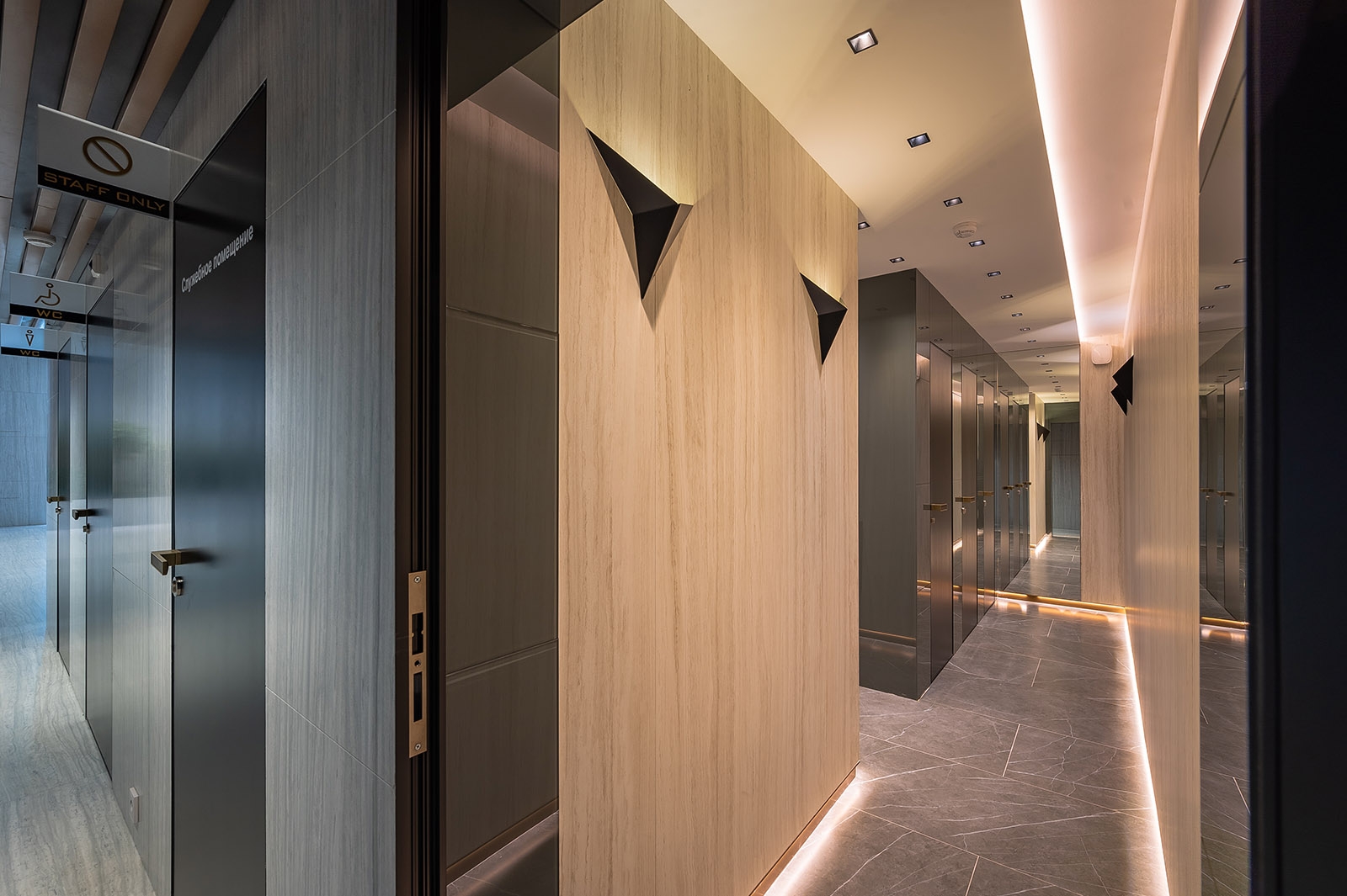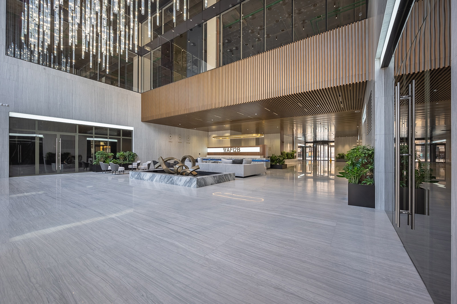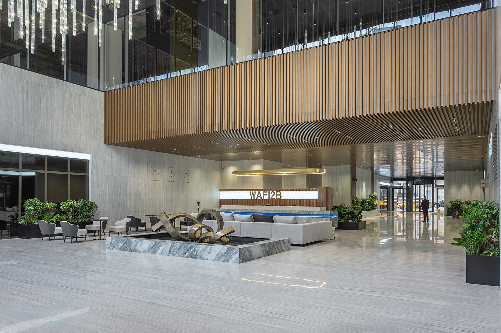 В каждом корпусе предусмотрены собственные входные группы и набор инженерных систем. На всей территории объекта обеспечена безбарьерная среда для маломобильных посетителей. Проведен комплекс мероприятий по озеленению, в том числе высажены кустарники, разбиты цветники и газоны. Здание спроектировано с учетом международных стандартов и принципов зеленого строительства – повышенных требований к экологичности используемых материалов и проектных решений.