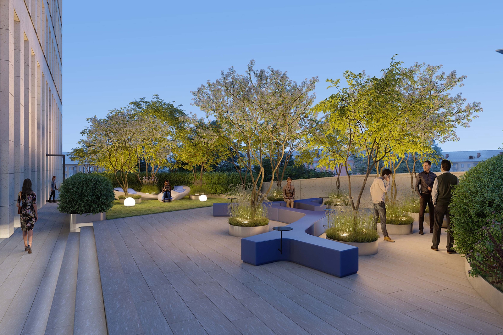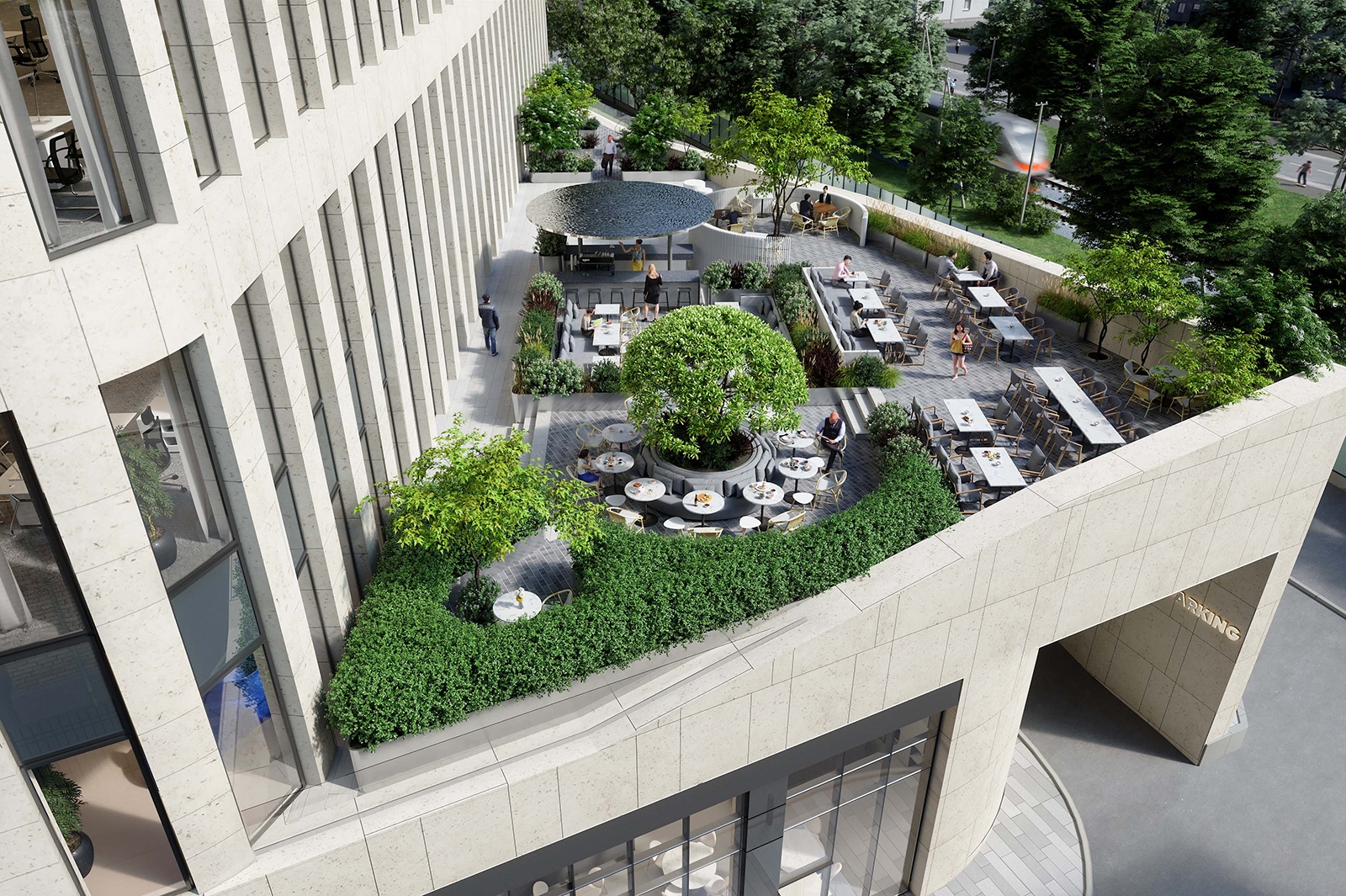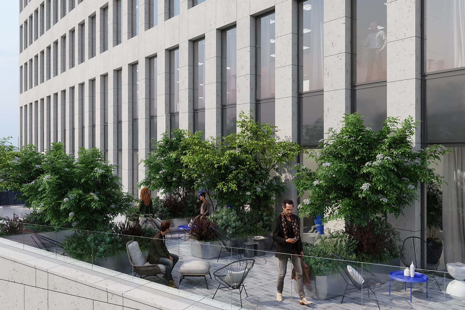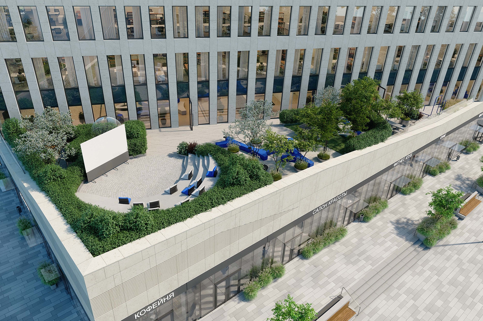 По его словам, помимо офисов предусмотрены помещения под кафе, сервисы и магазины, а также две благоустроенные террасы для досуга.