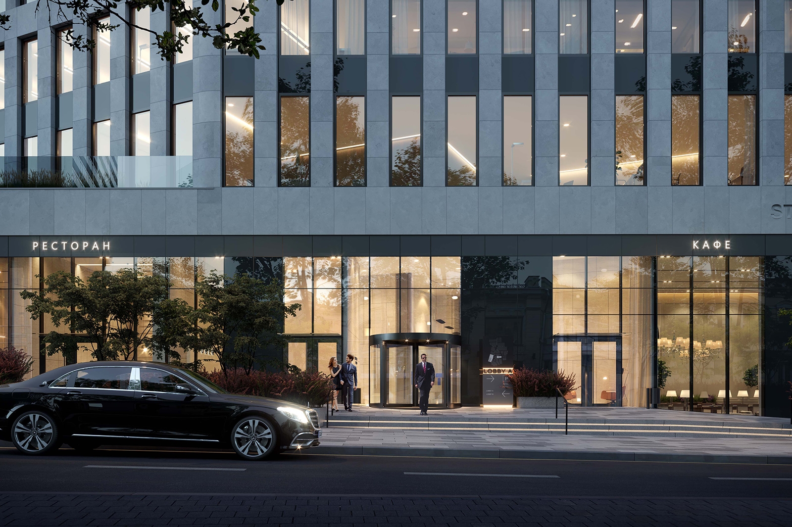 «Бизнес-центр выполнят в актуальной современной стилистике: здание будет в форме неправильного шестиугольника, а облицовку фасадов сделают из юрского мрамора светлого оттенка», – сказал Сергей Кузнецов.
