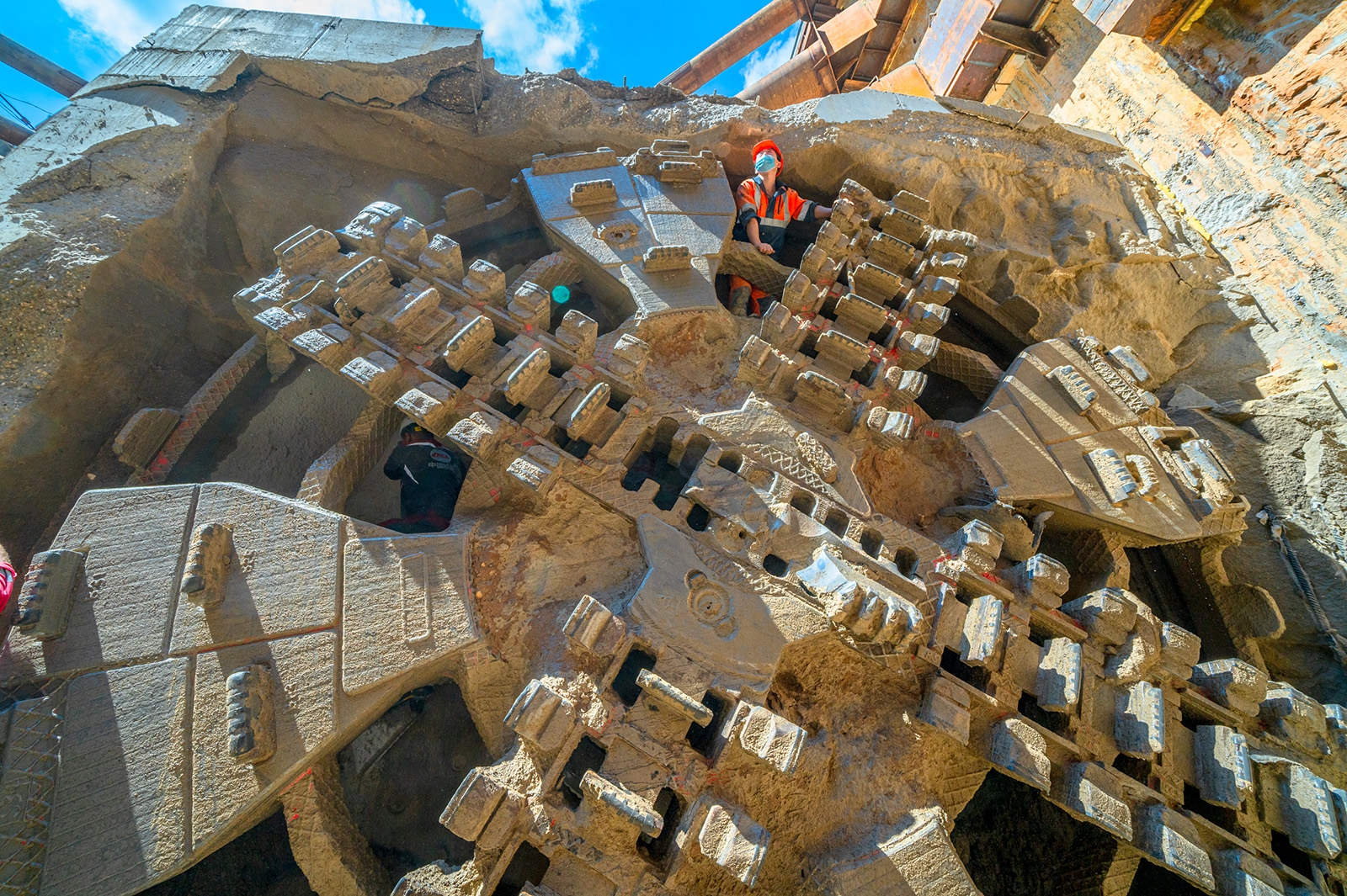 «Финиш щита состоялся в бетонном кубе во избежание неконтролируемого выхода грунта и грунтовых вод во время завершения работы ТПМК», – пояснил Андрей Бочкарев.
