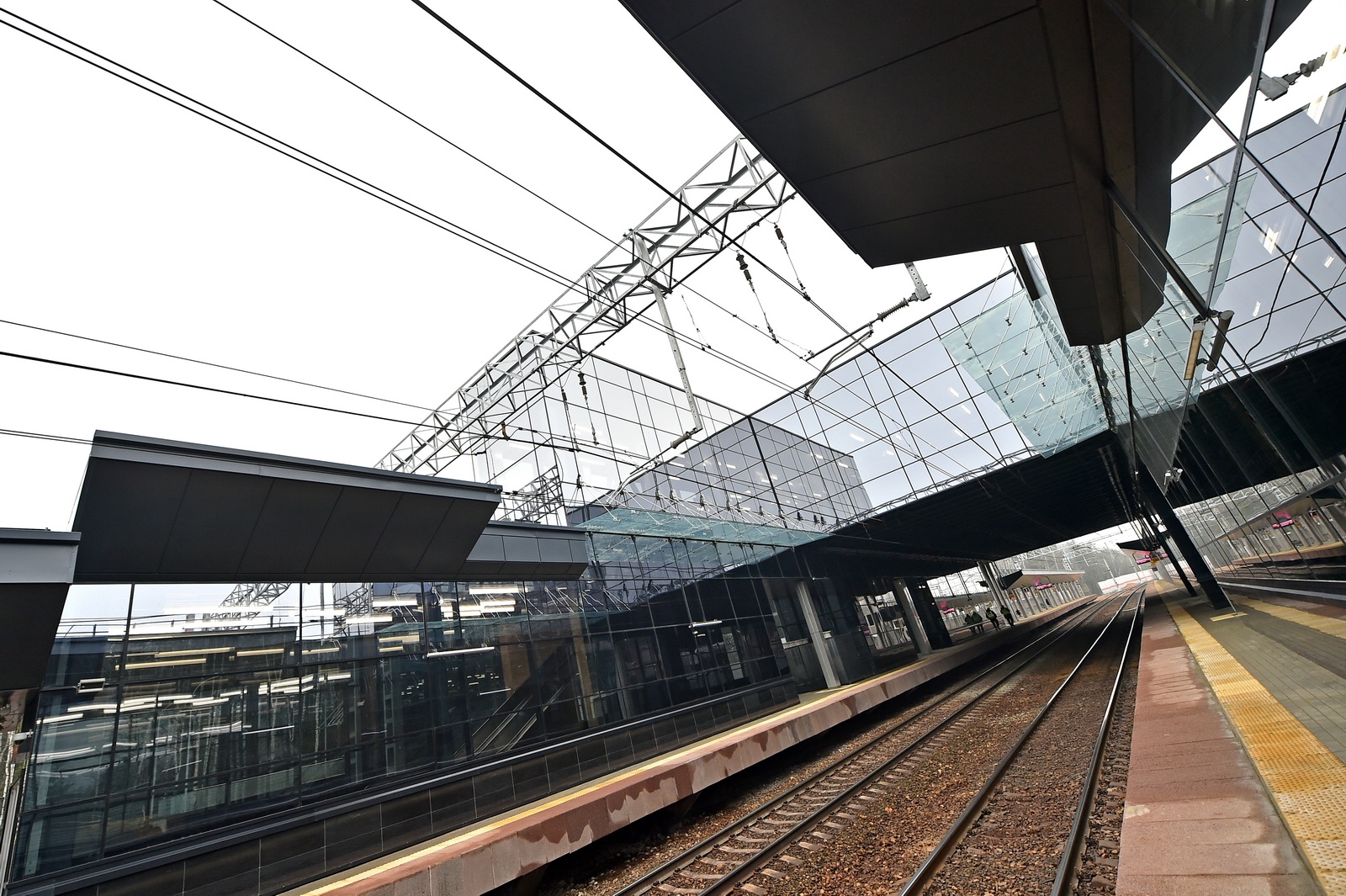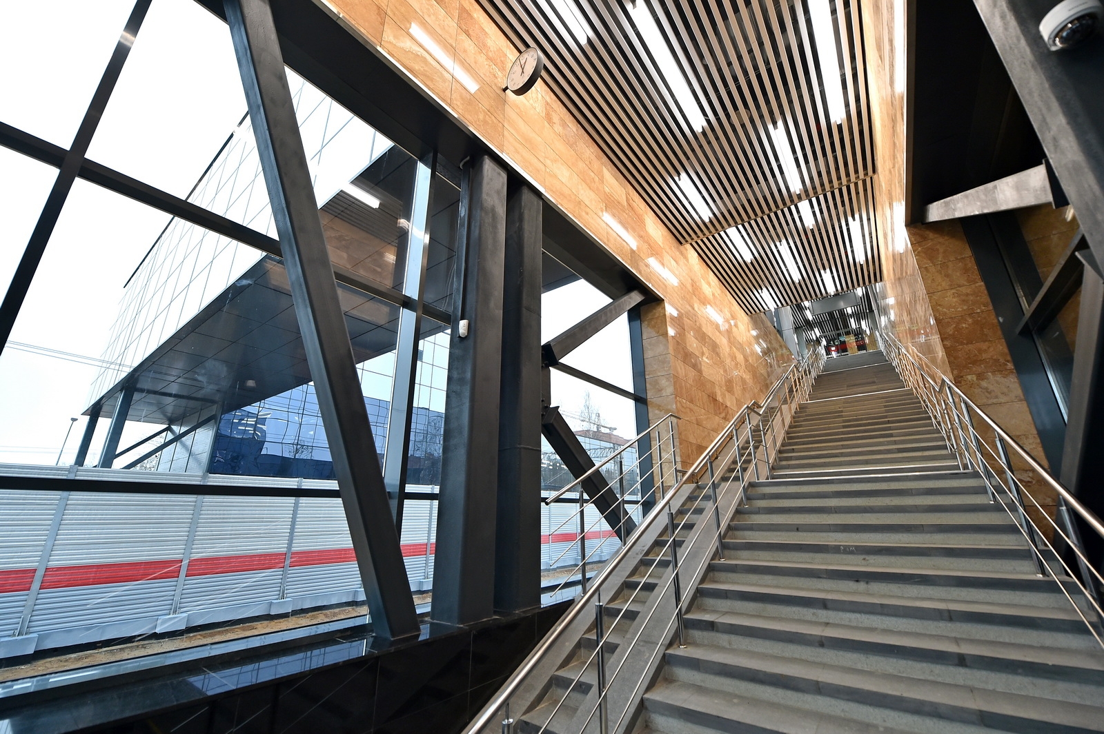 Кроме этого, для прохода к поездам построили крытый надземный переход, приспособленный для маломобильных граждан: там установлено шесть эскалаторов и четыре лифта.