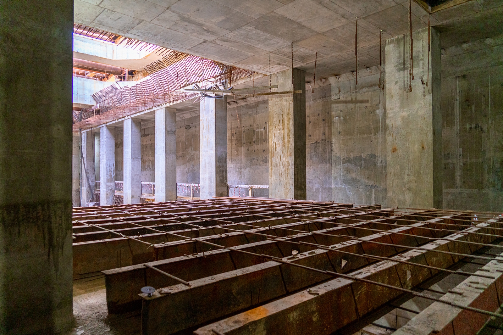 При строительстве станции «Нижегородская» применили технология top-down, когда подземная часть возводится «сверху-вниз» от уровня земной поверхности. Сначала бетонируют перекрытия и сваи-колонны, а потом работы идут вглубь с возможностью параллельного строительства сооружений на поверхности. Это позволяет работать в условиях плотной застройки и экономит время.