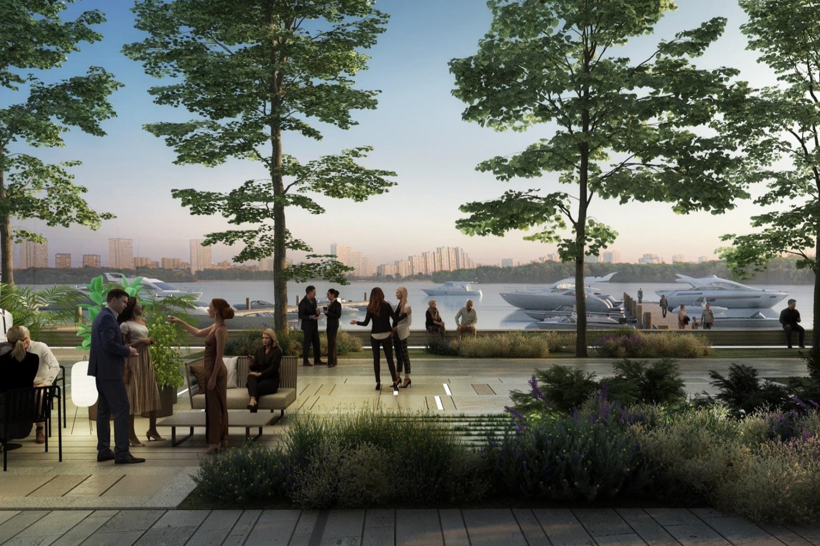 Пространство нового городского квартала будет включать две марины для лодок разного типа, плавучие бани и понтонный бассейн на открытом воздухе, а также оборудованные станции для занятий водными видами спорта.