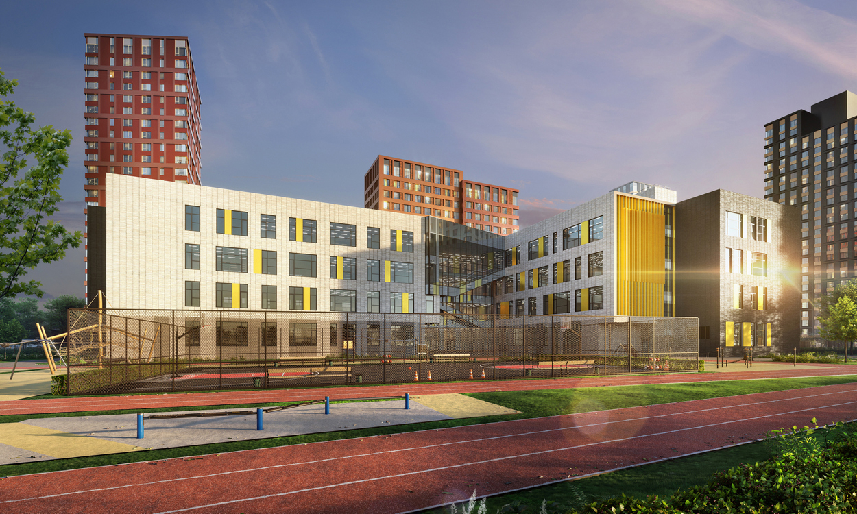 Также на территории комплекса ведется строительство здания школы на 825 учащихся площадью 12,2 тыс. кв. метров, ввод которой намечен в 2024 году.