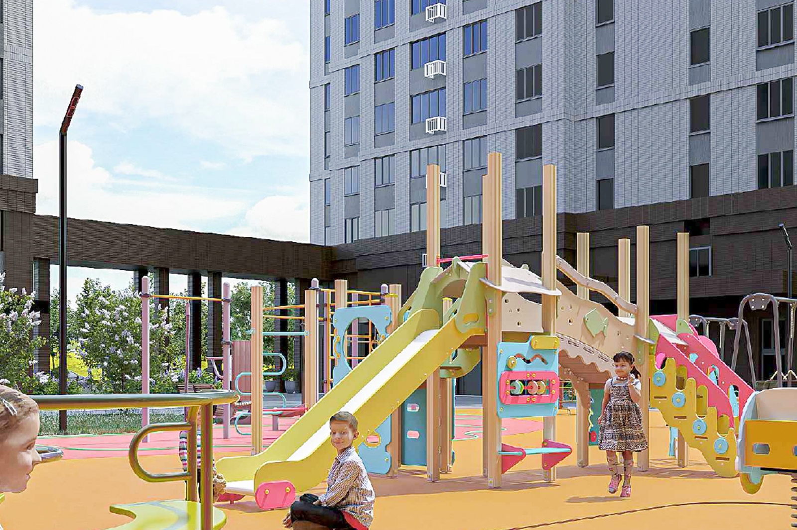 Придомовую территорию благоустроят и озеленят. Здесь высадят деревья и кустарники, разобьют газоны и цветники, установят две детские площадки с безопасными резиновым покрытием и спортивную площадку, обустроят зону для тихого отдыха.